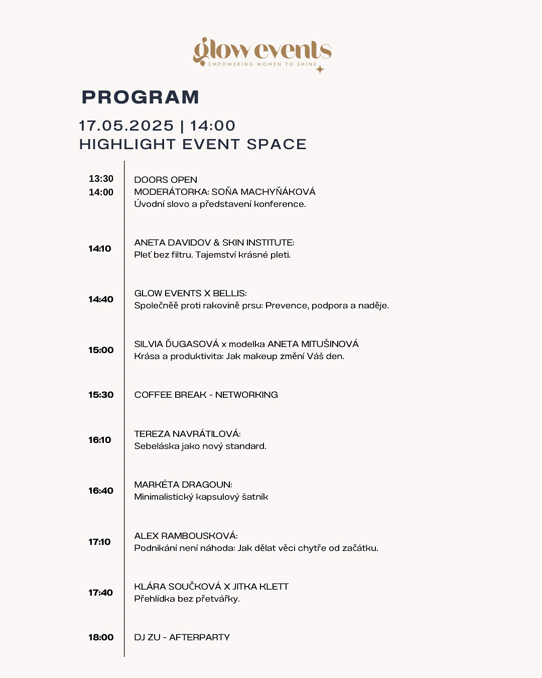 Připojte se k nám na našem prvním Glow Eventu, který se uskuteční 17. května 2025 v Highlight Event Space.